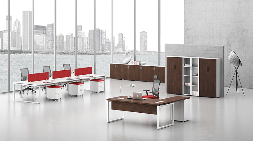 凯撒系列,源自德国的设计风格,糅合木的柔美与刚强的特质,深褐色的睿智理性与白色的纯净空白带来强烈的视觉对比。桌脚部位采用白漆方框金属支撑架,或是装饰或是必须,恰到好处地表现凯撒的艺术姿态。如此,简练高雅的设计,体现出东方华奥现代办公打造的高品位、个性化的办公方式。