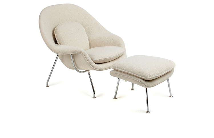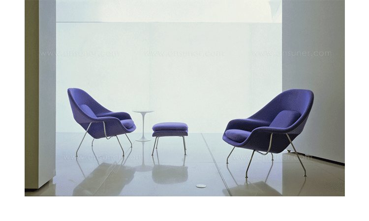 Womb Chair 的基本构造是由抛光镀铬或雾面钢管底座,以一体成型的泡棉包覆框架所组成。 Eero Saarinen 设计这张椅子挑战了一般世俗的规则,打破窠臼,树立了新的现代设计和舒适的标准,充分显示他的高超才华。